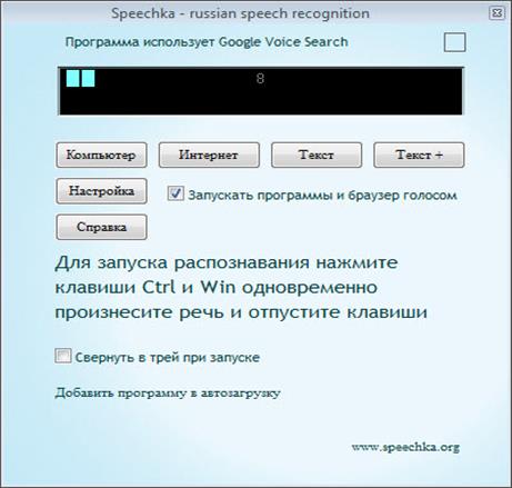 Программа Speechka Голосовое управление запуском программ, музыки, фильмов и сайтов